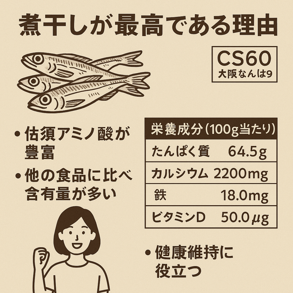 日本の誇るスーパーフード「煮干し」|CS60大阪なんば9 CS60で外側の流れを整え、煮干しで内側の材料を満たす。セルフケアの基本に。 たんぱく質・ミネラル・オメガ3・ビタミンDが一度にとれる“再生食”。 栄養ハイライト […]